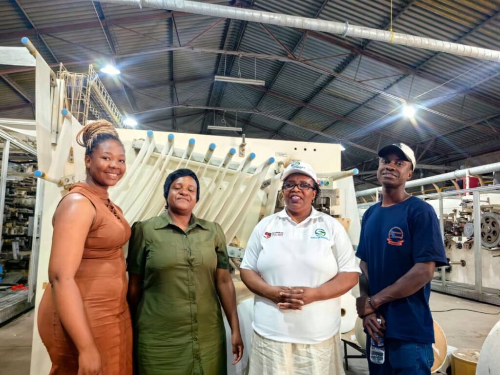 On Friday, Muzambi toured Happy Day, a Chinese-owned company in Harare, where she proposed the idea of collaborating to make sanitary products more accessible while promoting locally produced goods.